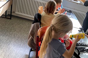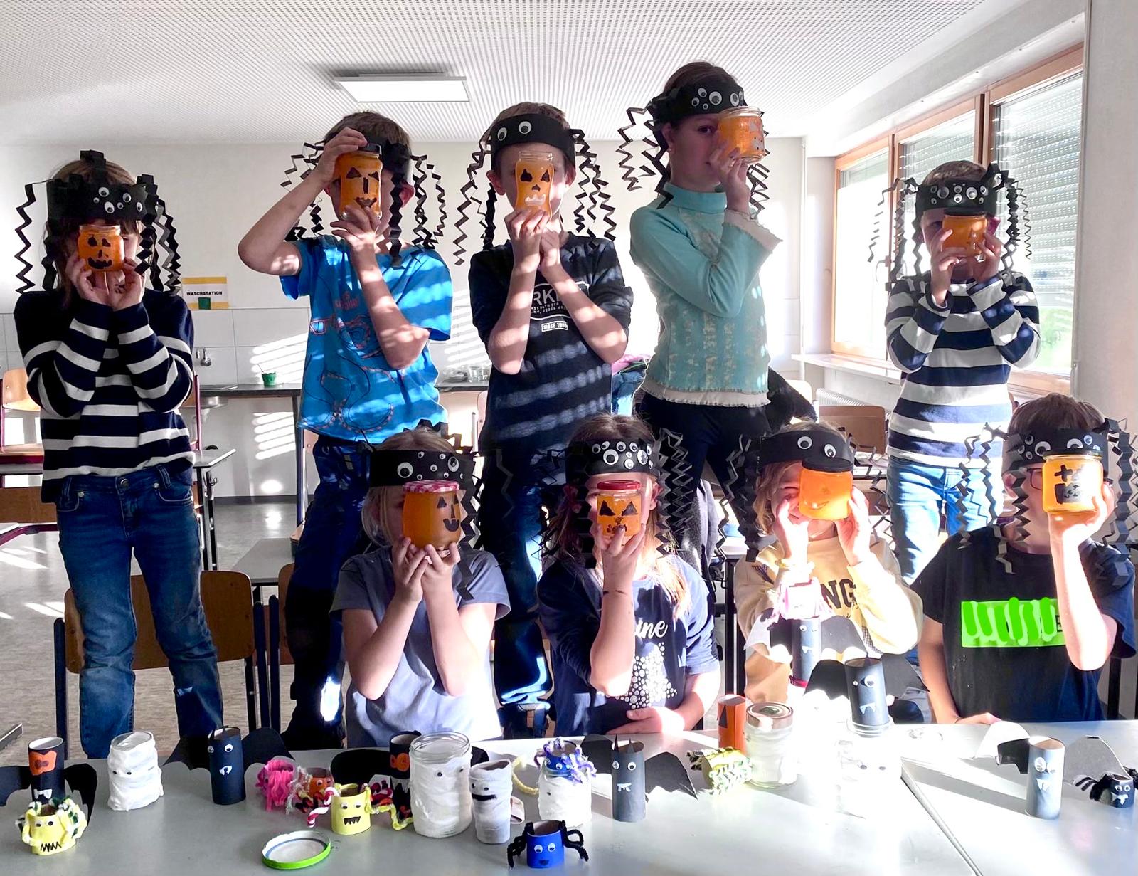 Am 24. Oktober organisierte der Schulförderverein ein fröhliches Halloween-Basteln für die Kinder der Klasse eins. Die Kinder kreierten gruselige Lichter und Deko. Das Highlight war das Basteln der Spinnenhüte, die sie stolz präsentierten.