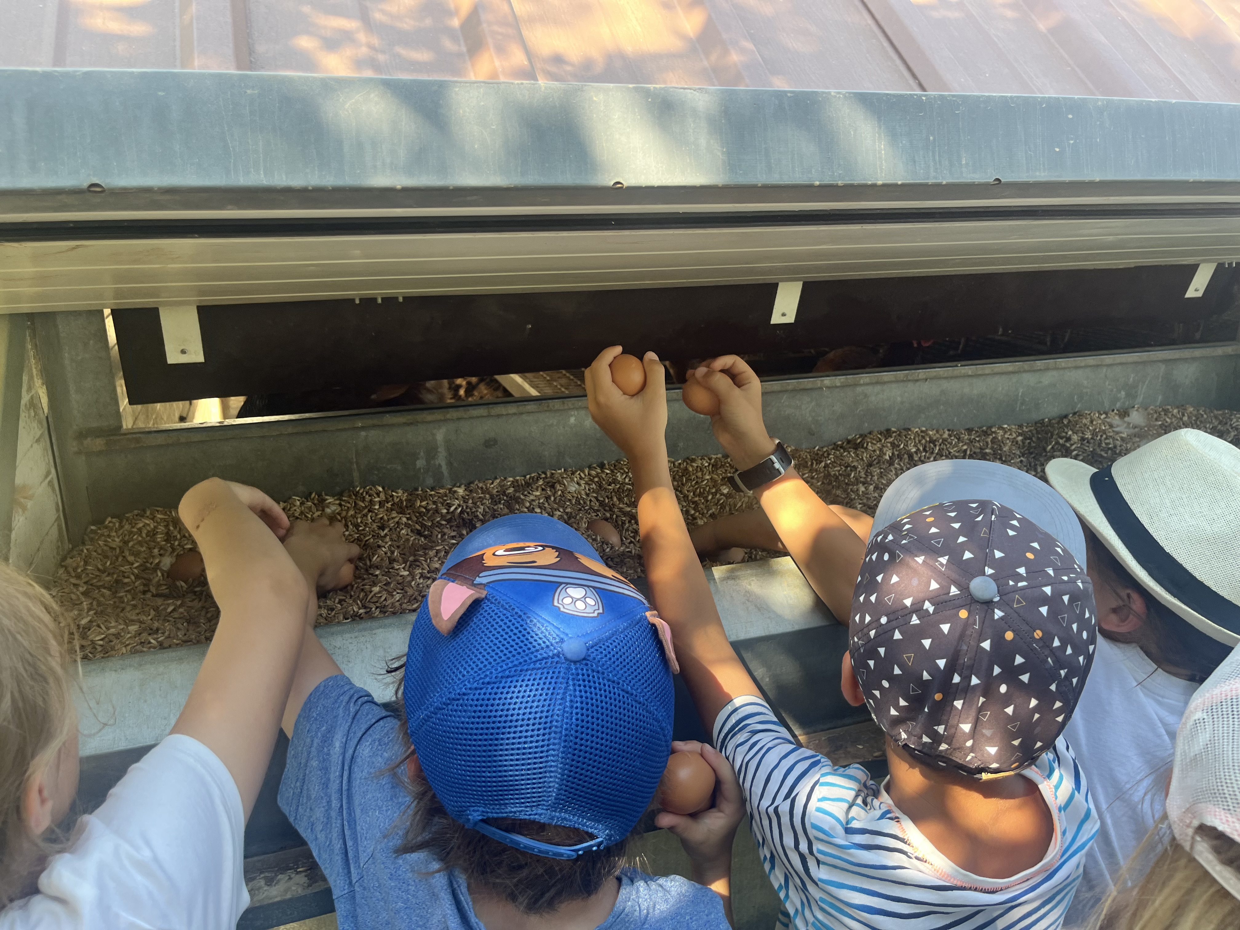 Die Kinder durften verschiedenes Getreide kennenlernen und sogar probieren. Ein besonderes Highlight war das „Hexenhaus“, in dem sonst Brot gebacken wird und das mit seiner märchenhaften Atmosphäre für große Augen sorgte. Danach ging es direkt zu den Tieren: Die Kinder streichelten Schweine und fütterten sie mit frischem Gras. Auch Hühner wurden liebevoll gestreichelt – und ganz nebenbei sammelten die jungen Besucher auch einige frische Eier ein.